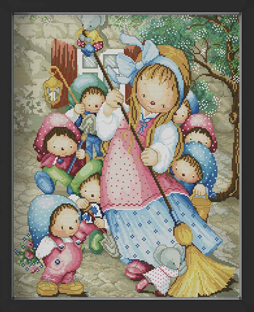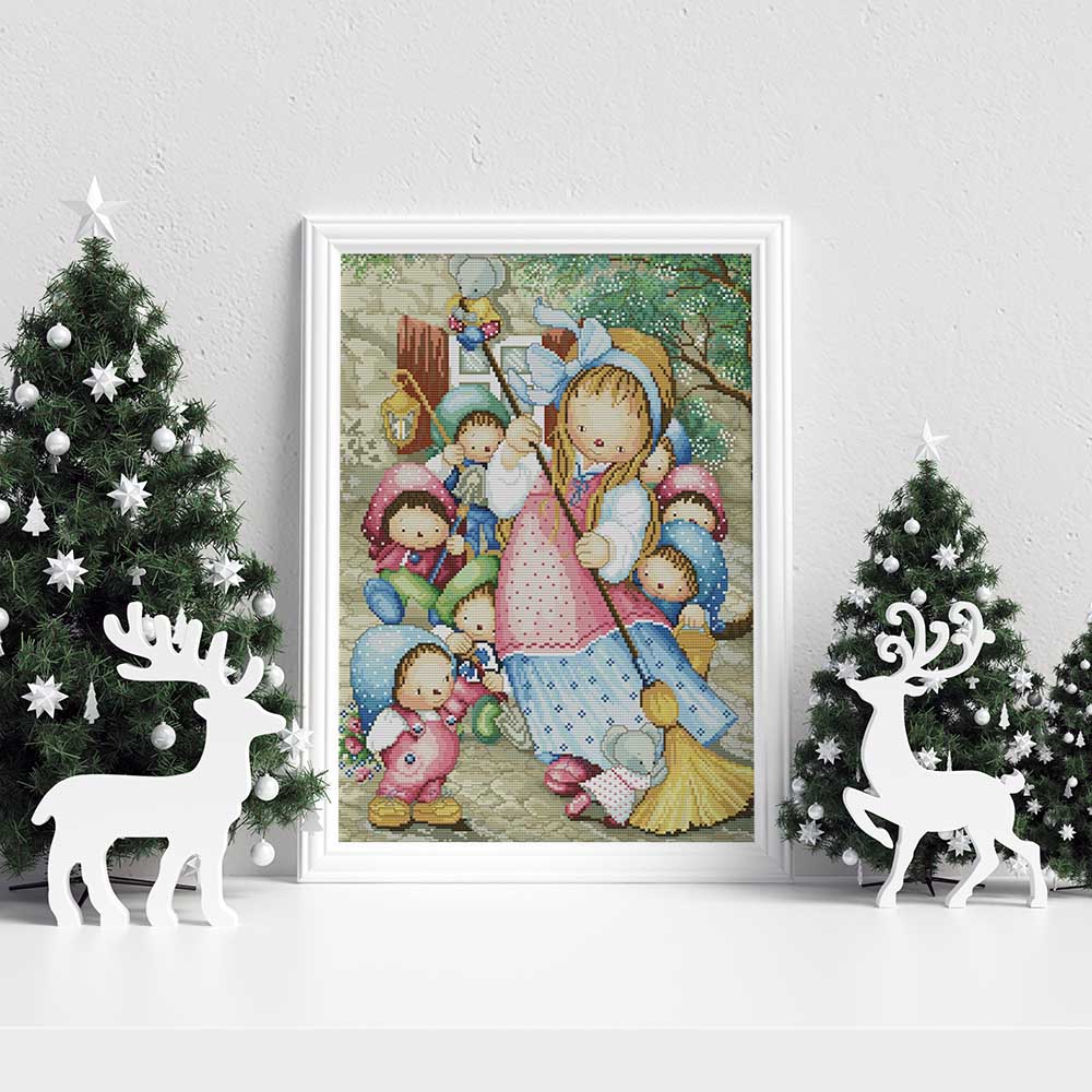 Kreuzstich - Familie mit kleinen Kindern | 40x50 cm