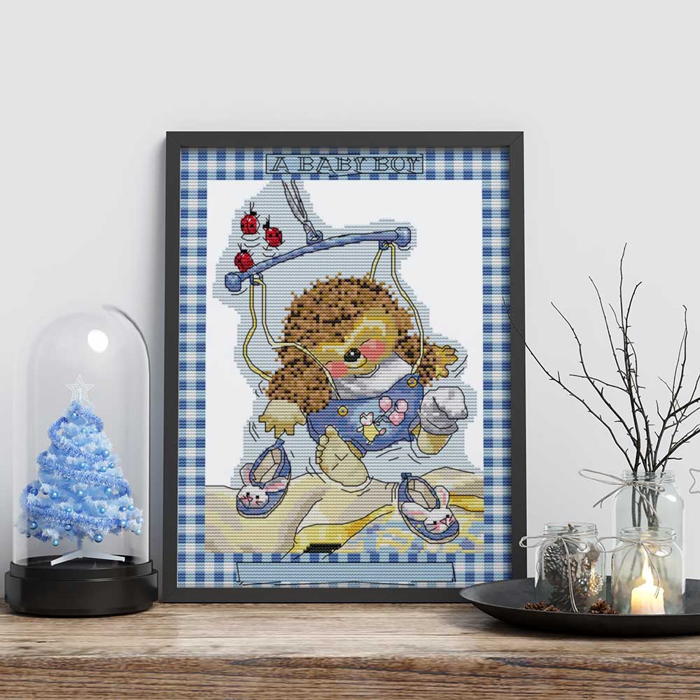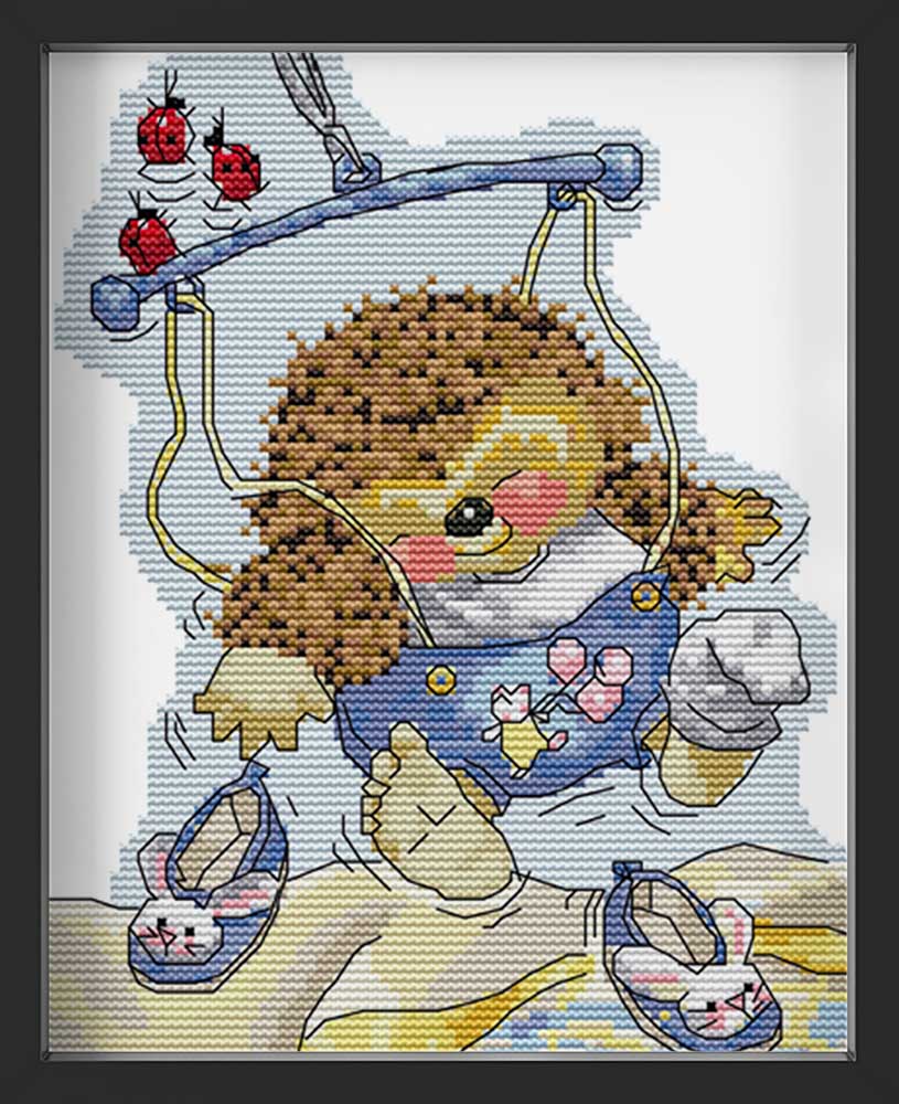 Kreuzstich - Igel in Schaukel | 20x30 cm - Diy - Fadenkunst