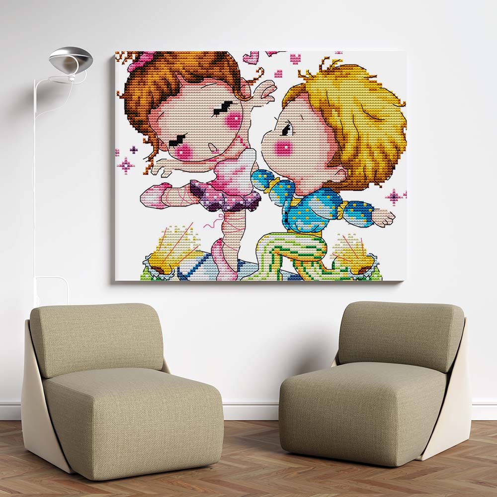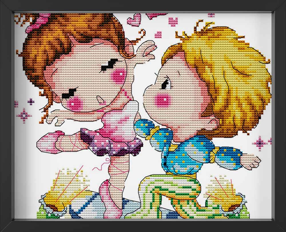 Kreuzstich - Kinder tanzen Ballette | 25x30 cm - Diy - Fadenkunst
