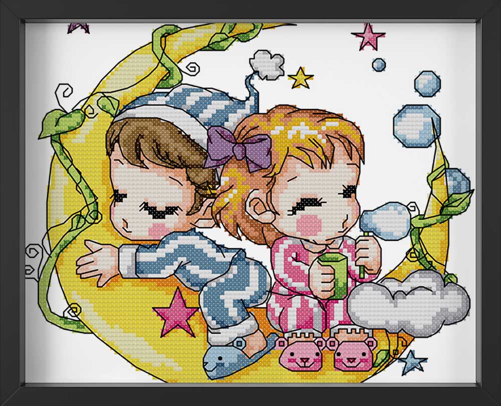 Kreuzstich - kleine Kinder auf dem Mond | 45x30 - Diy - Fadenkunst