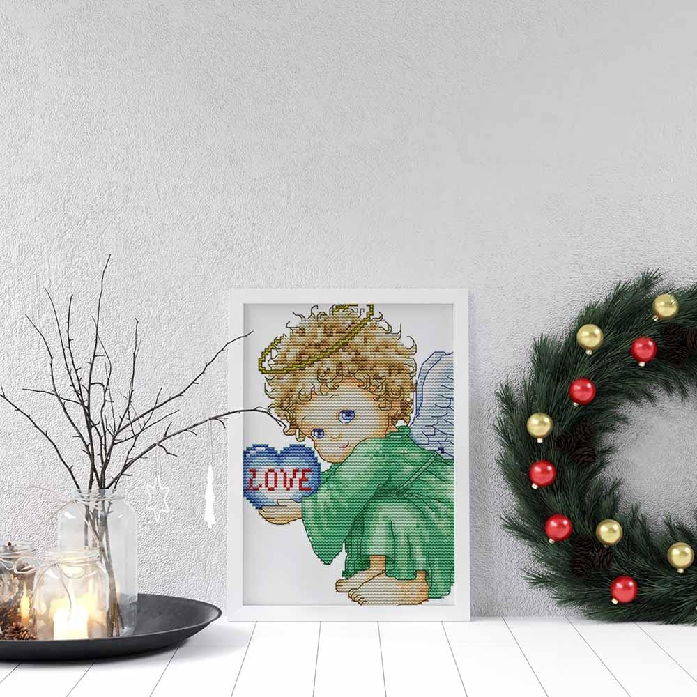 Kreuzstich -  kleiner Engel Love grün | 25x25 cm - Diy - Fadenkunst