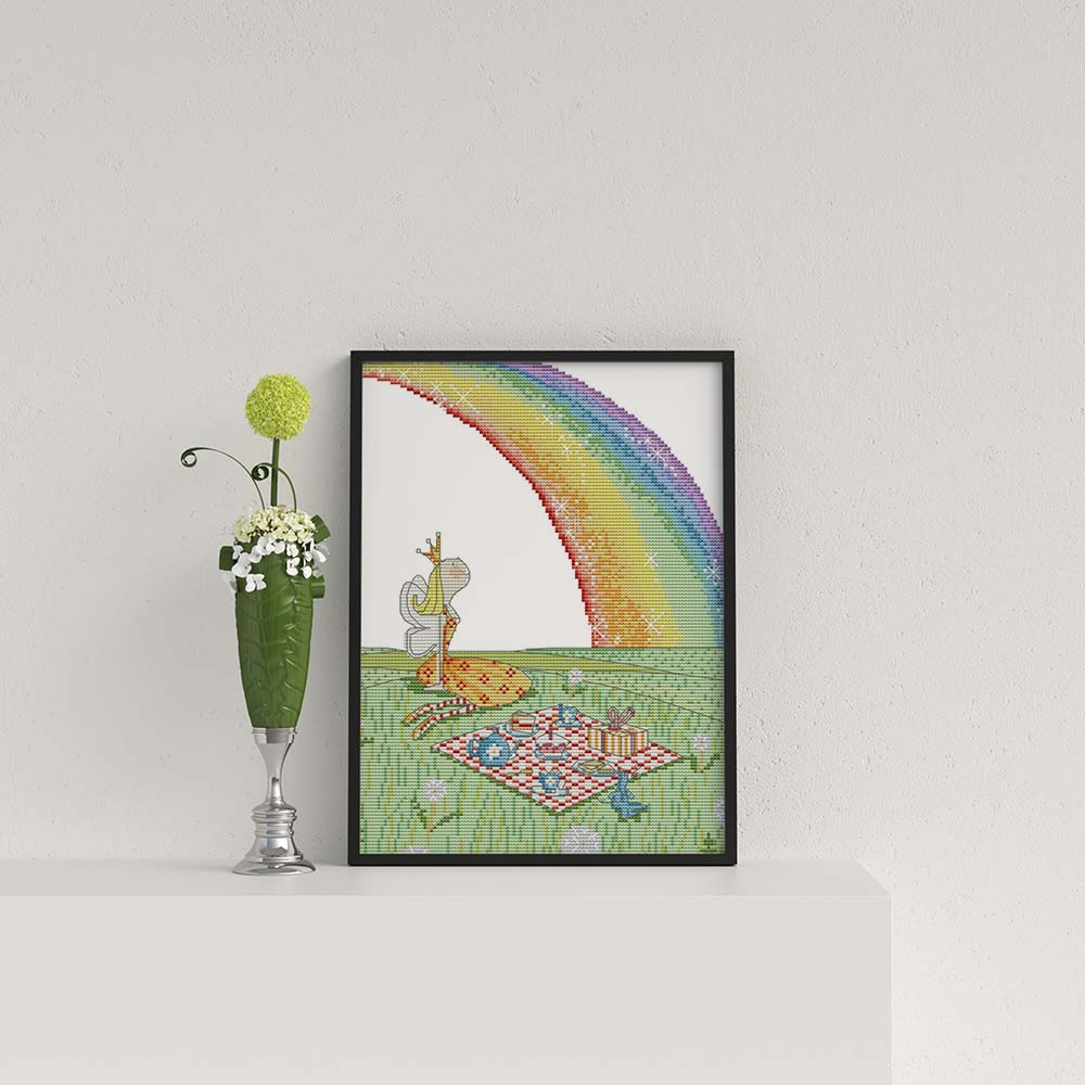 Kreuzstich - Regenbogen mit Mädchen | 30x30 cm - Diy - Fadenkunst