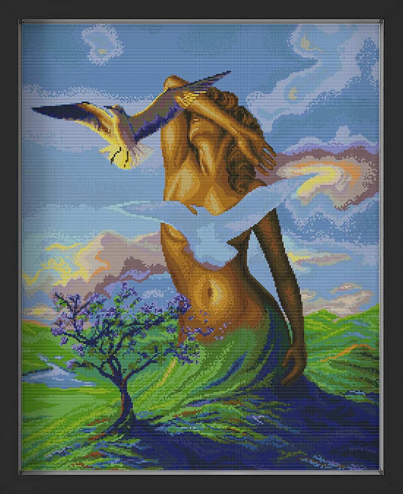 Kreuzstich - nackte Frau mit Adlern | 50x60 cm - Diy - Fadenkunst