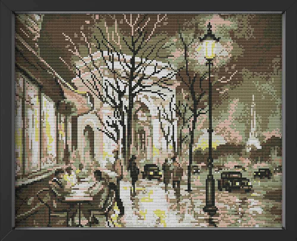 Kreuzstich - Stadt in der Nacht | 40x40 cm