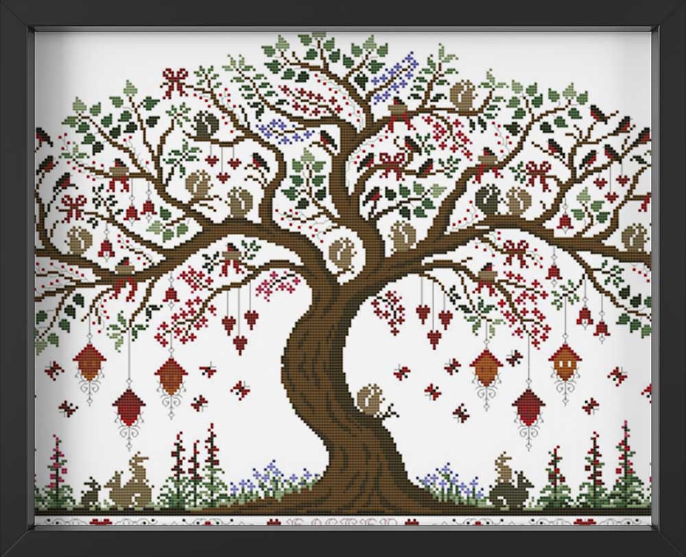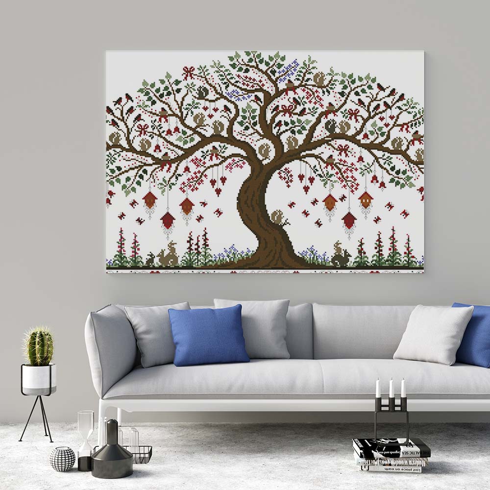 Kreuzstich - abstrakter Baum mit Blättern | 60x40 cm - Diy - Fadenkunst