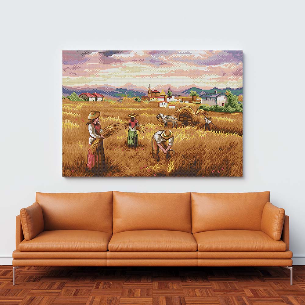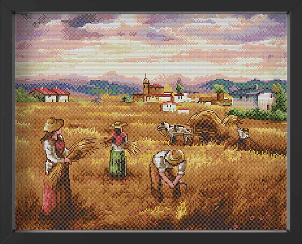 Kreuzstich - Bauern am arbeiten auf dem Feld | 50x40 - Diy - Fadenkunst