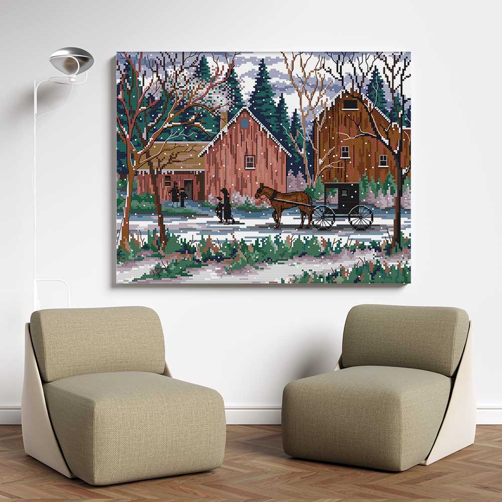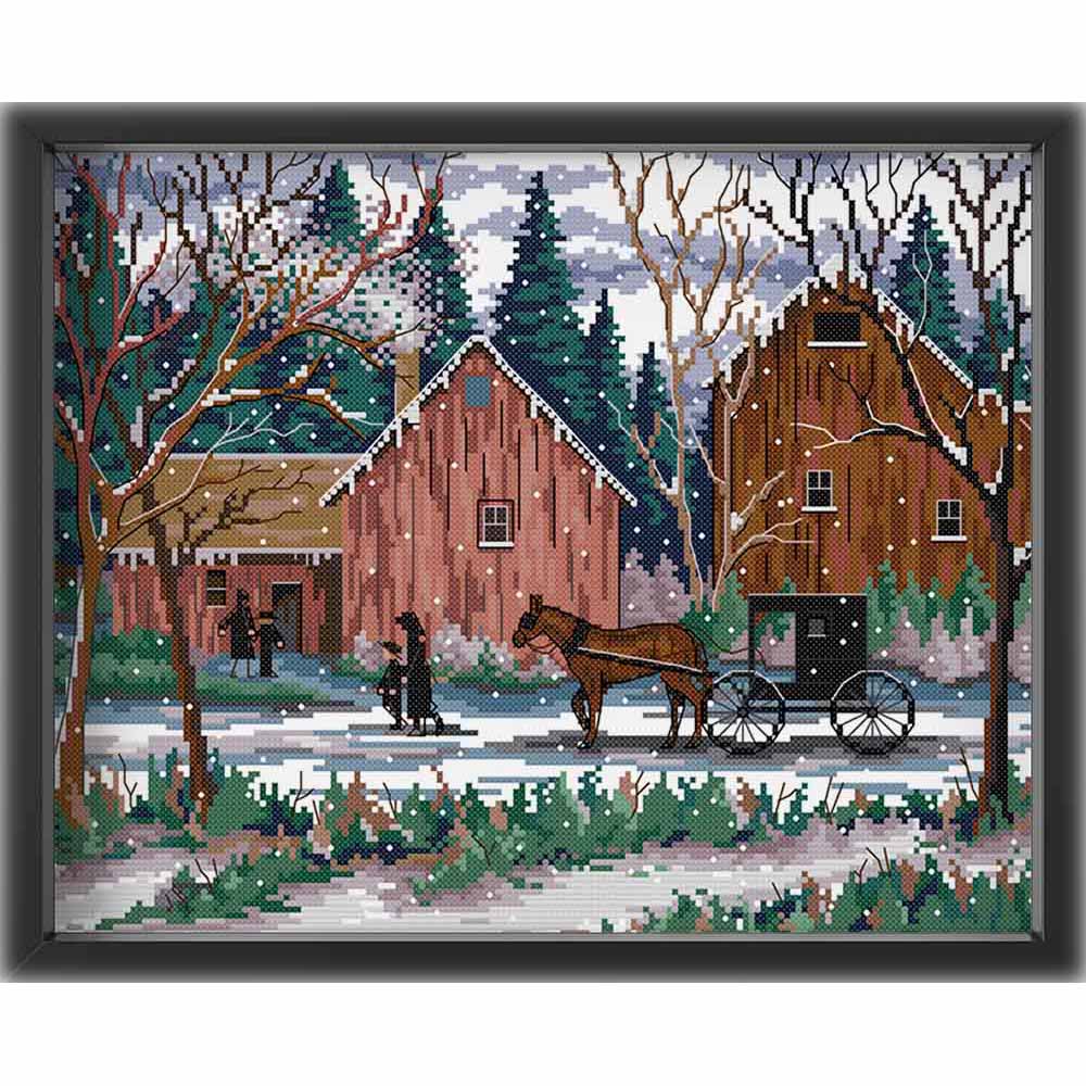 Kreuzstich - Bauernhof im Schnee | 40x30 cm