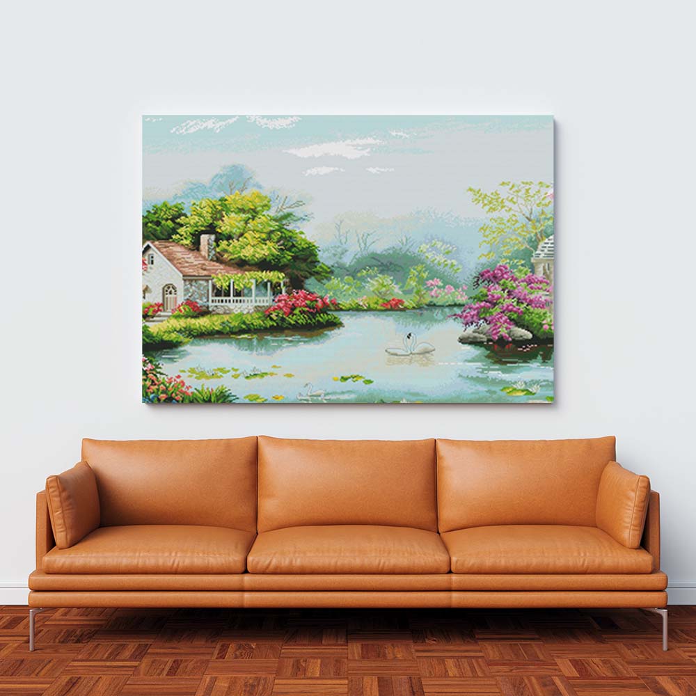 Kreuzstich - Ferienhaus mit See | 120x60 - Diy - Fadenkunst