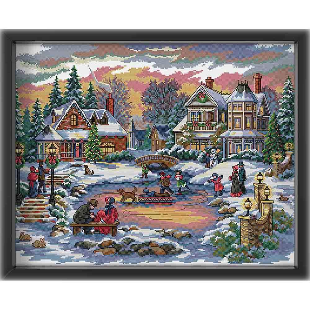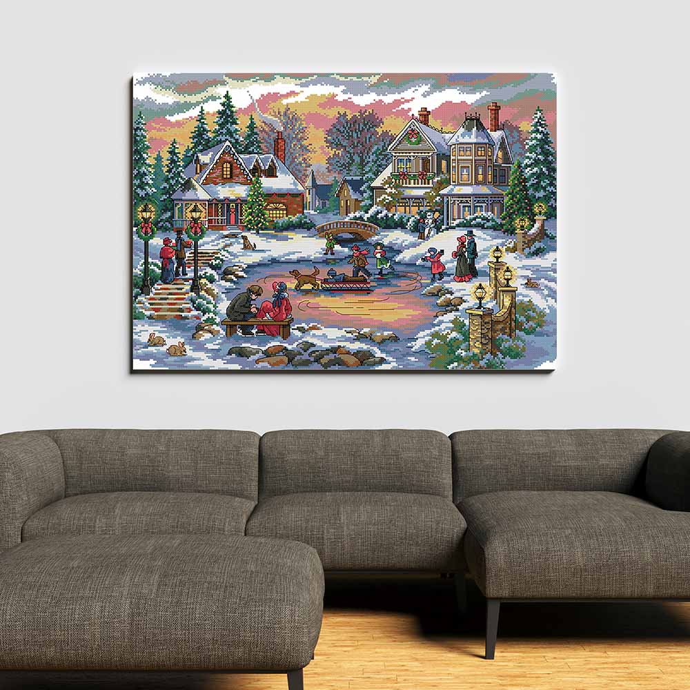 Kreuzstich - Gefrorener See | 55x40 cm - Diy - Fadenkunst