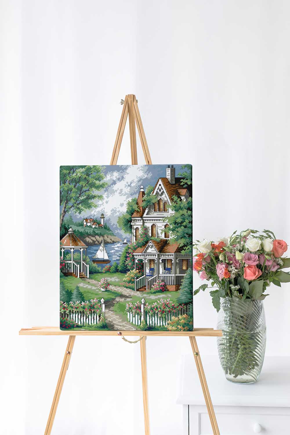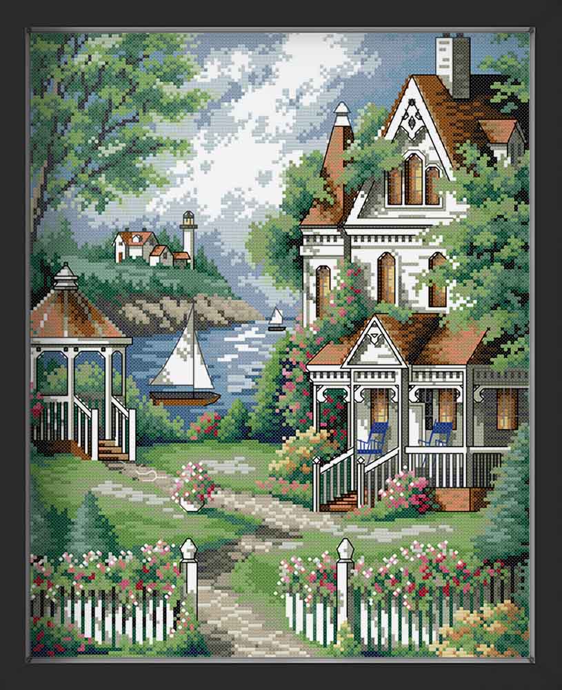 Kreuzstich - großes Haus am Meer | 30x40 cm - Diy - Fadenkunst