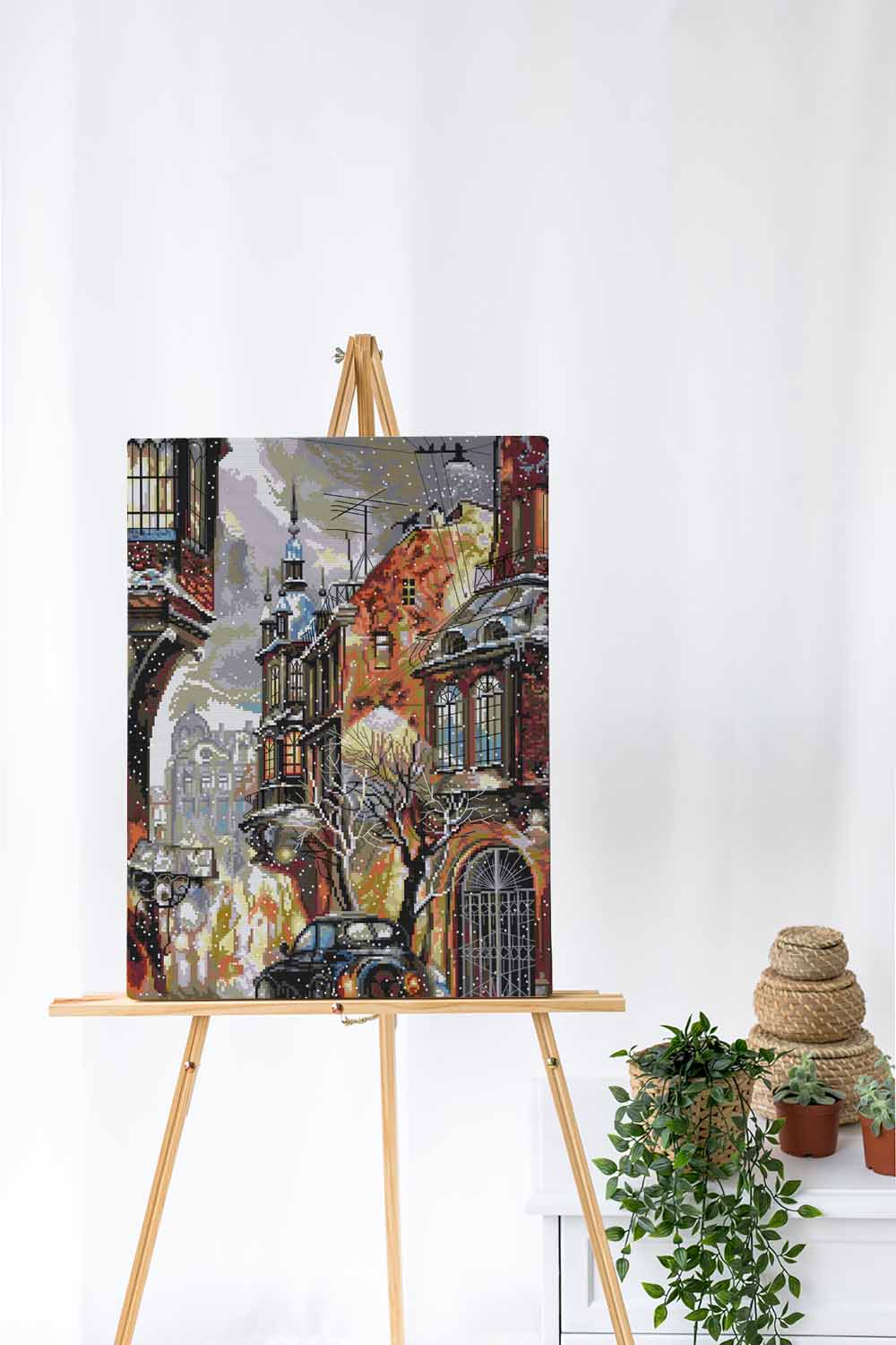 Kreuzstich - Häuser im Winter bei Dunkelheit | 40x50 cm - Diy - Fadenkunst