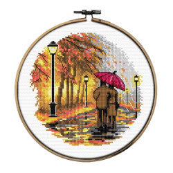Kreuzstich (inkl. Stickrahmen) | Spaziergang im Regen DM 20cm