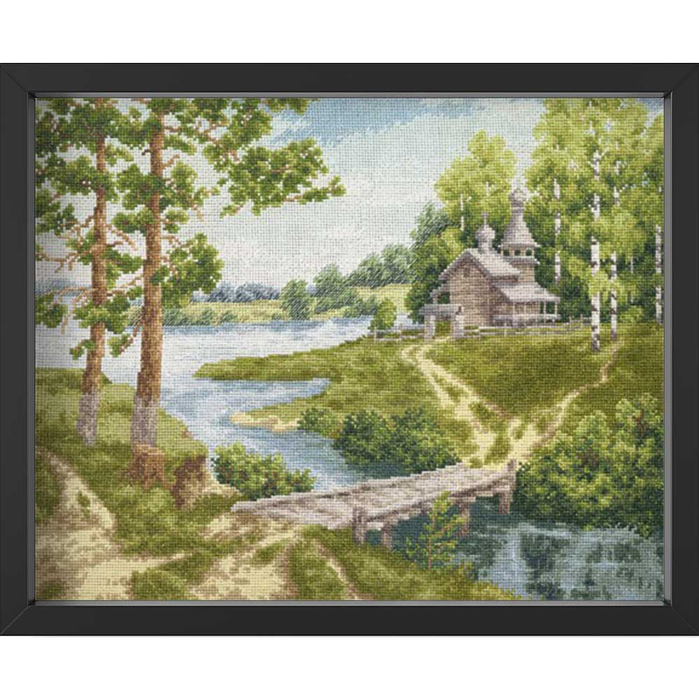 Kreuzstich - Kapelle am Flussufer | 30x40 cm