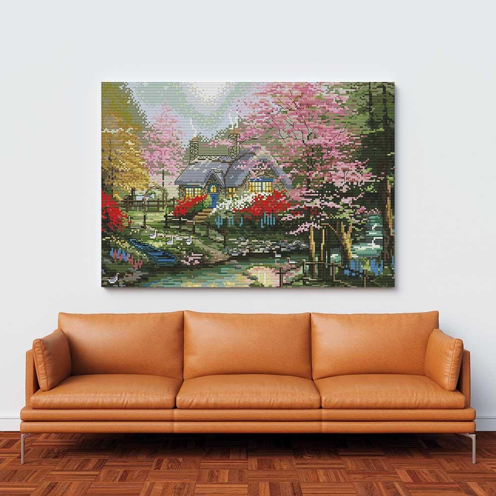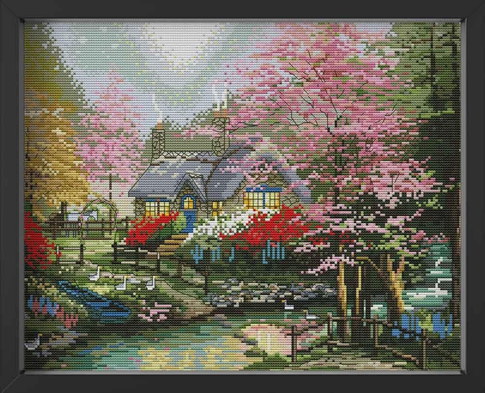 Kreuzstich -  kleines Häuschen mit Fluss | 40x30 - Diy - Fadenkunst