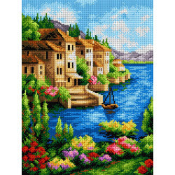 Kreuzstich | Dorf am See in Italien -  28x37 cm