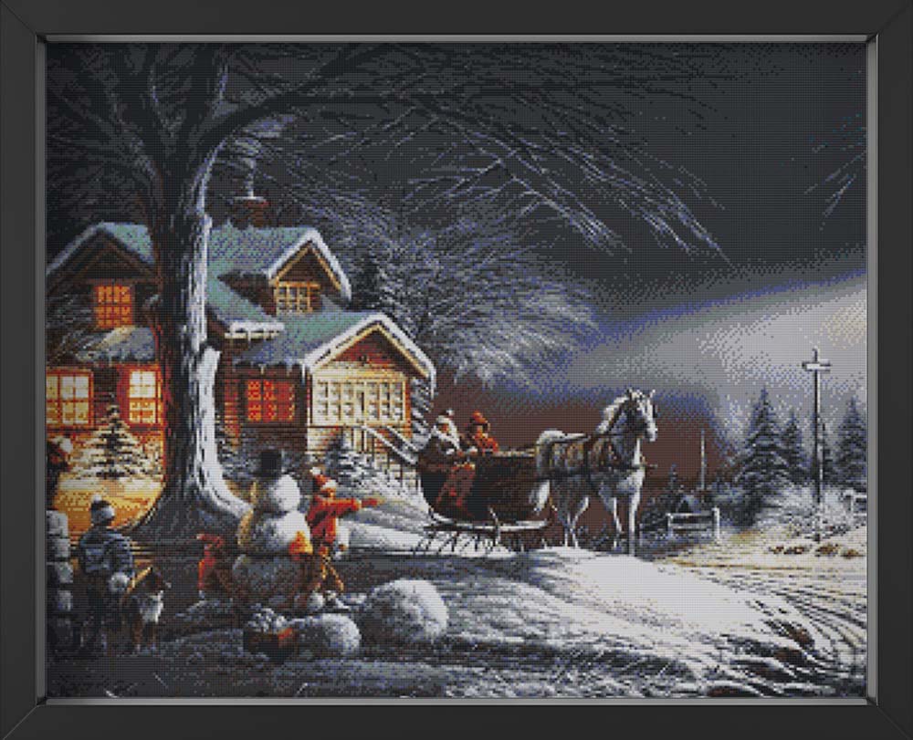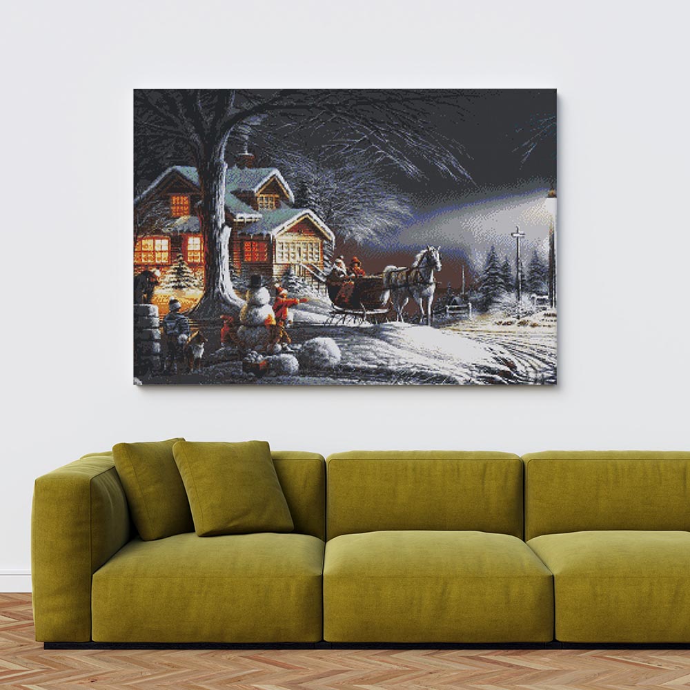 Kreuzstich - Winter Landschaft mit Schneemann | 70x55 cm - Diy - Fadenkunst