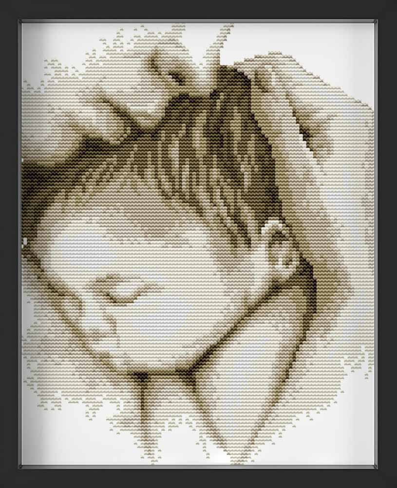 Kreuzstich - Baby mit Mutter schwarz weiß | 20x30 cm
