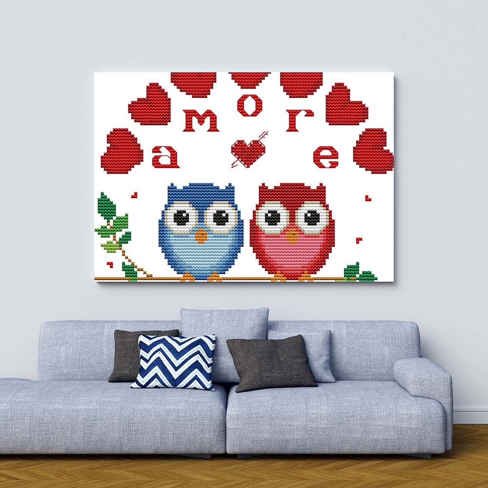 Kreuzstich -  Eulen amore | 25x20 cm - Diy - Fadenkunst