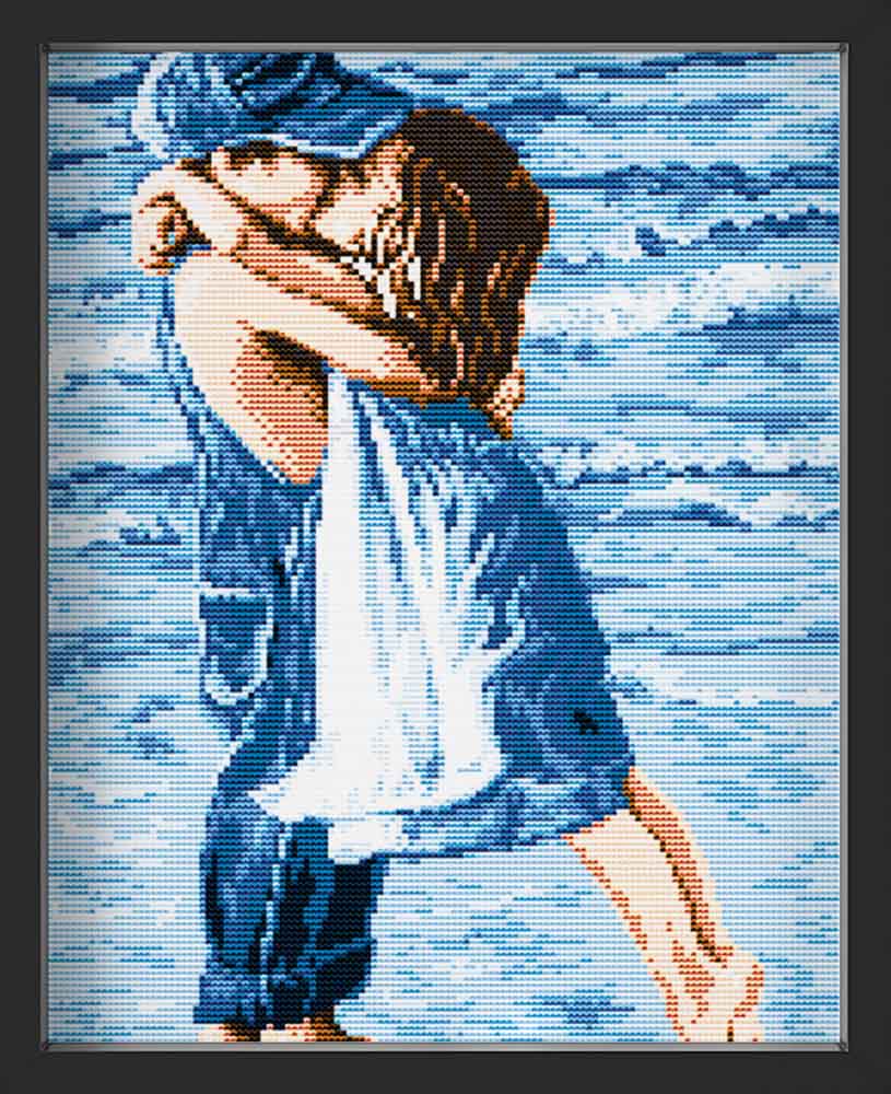 Kreuzstich - Kinder am Küssen | 30x45 cm