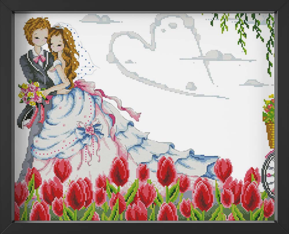 Kreuzstich - Pärchen feiert Hochzeit | 60x40