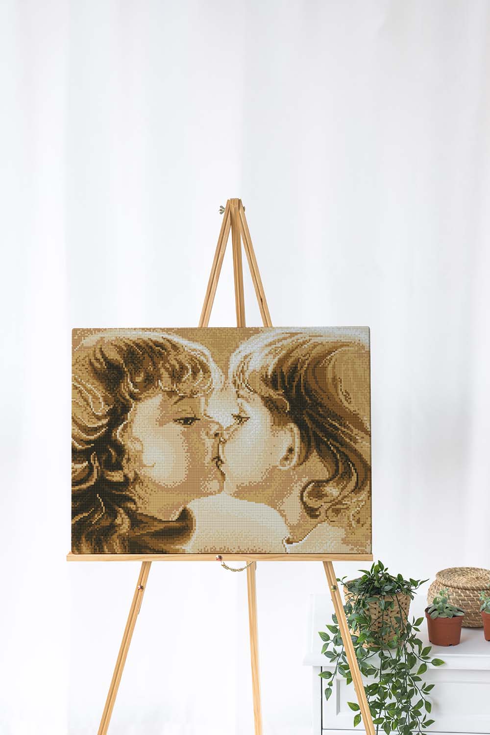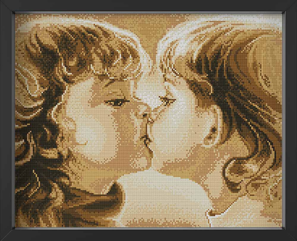 Kreuzstich - zwei Kinder am küssen | 50x30