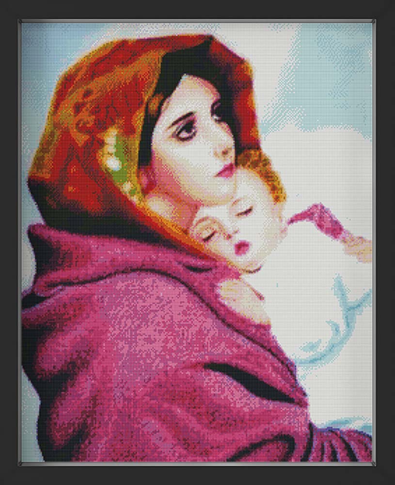 Kreuzstich - Mama mit Kind im Arm | 50x70 cm - Diy - Fadenkunst