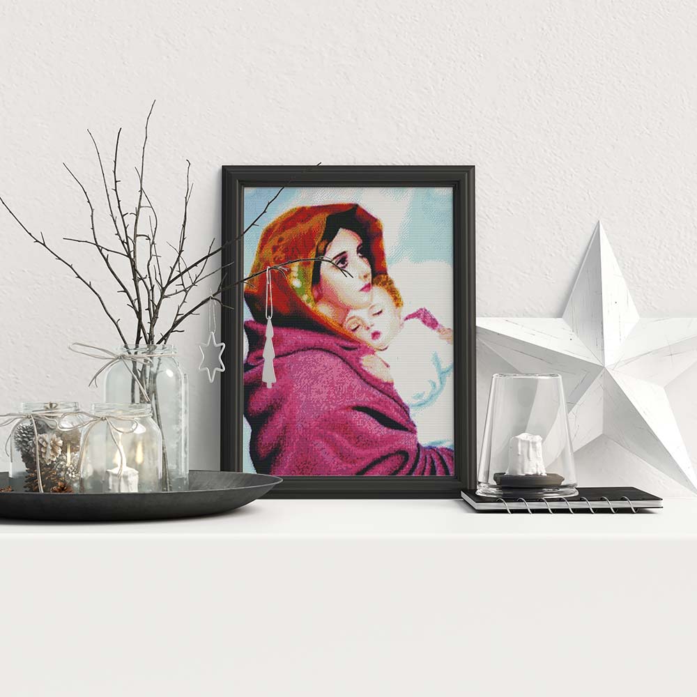 Kreuzstich - Mama mit Kind im Arm | 50x70 cm