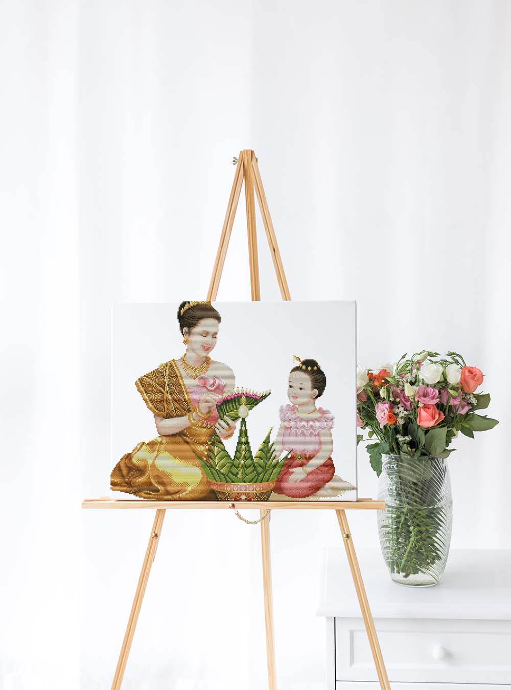 Kreuzstich -  Mama mit Tochter am sitzen | 50x40 cm - Diy - Fadenkunst