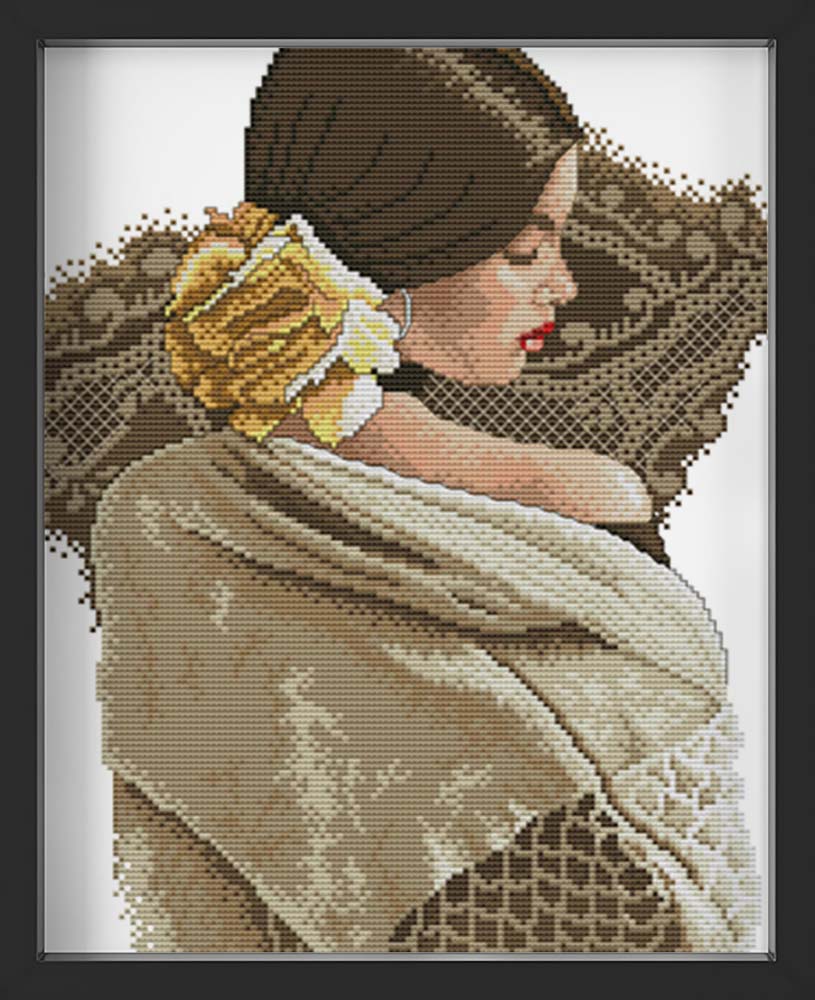 Kreuzstich - Schöne elegante Frau | 30x50 cm - Diy - Fadenkunst