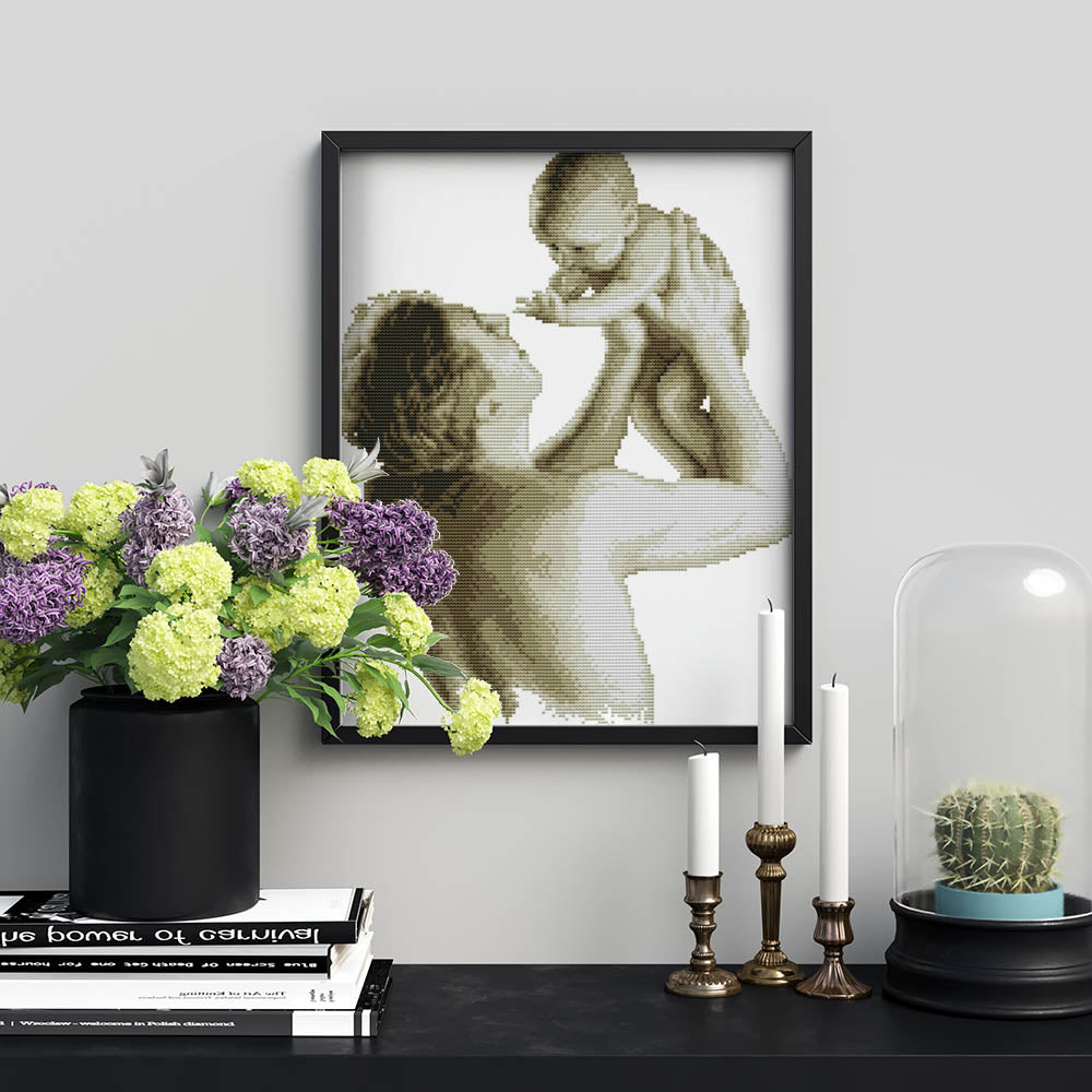 Kreuzstich - Vater mit Kind | 35x40 cm - Diy - Fadenkunst