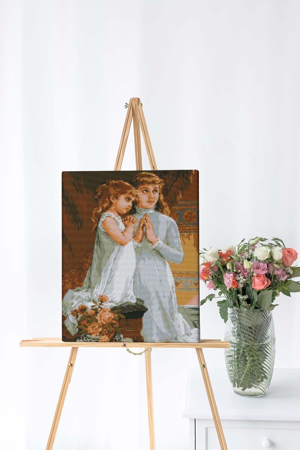 Kreuzstich - zwei Kinder im weißen Kleid | 40x50 cm