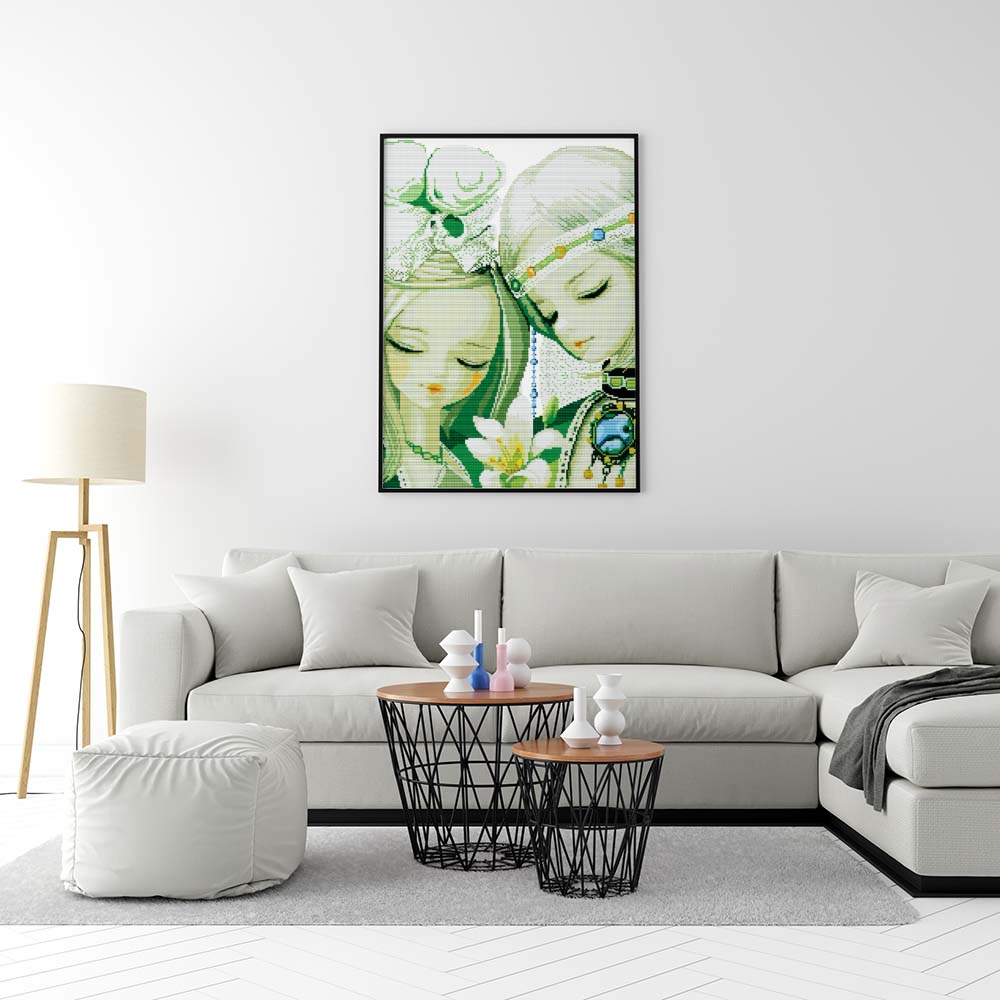 Kreuzstich - zwei Mädchen mit Kette | 40x50 cm - Diy - Fadenkunst
