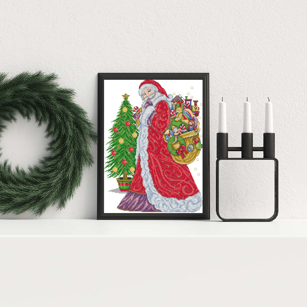 Kreuzstich | Weihnachtsmann mit Geschenken - 16 x 20 cm