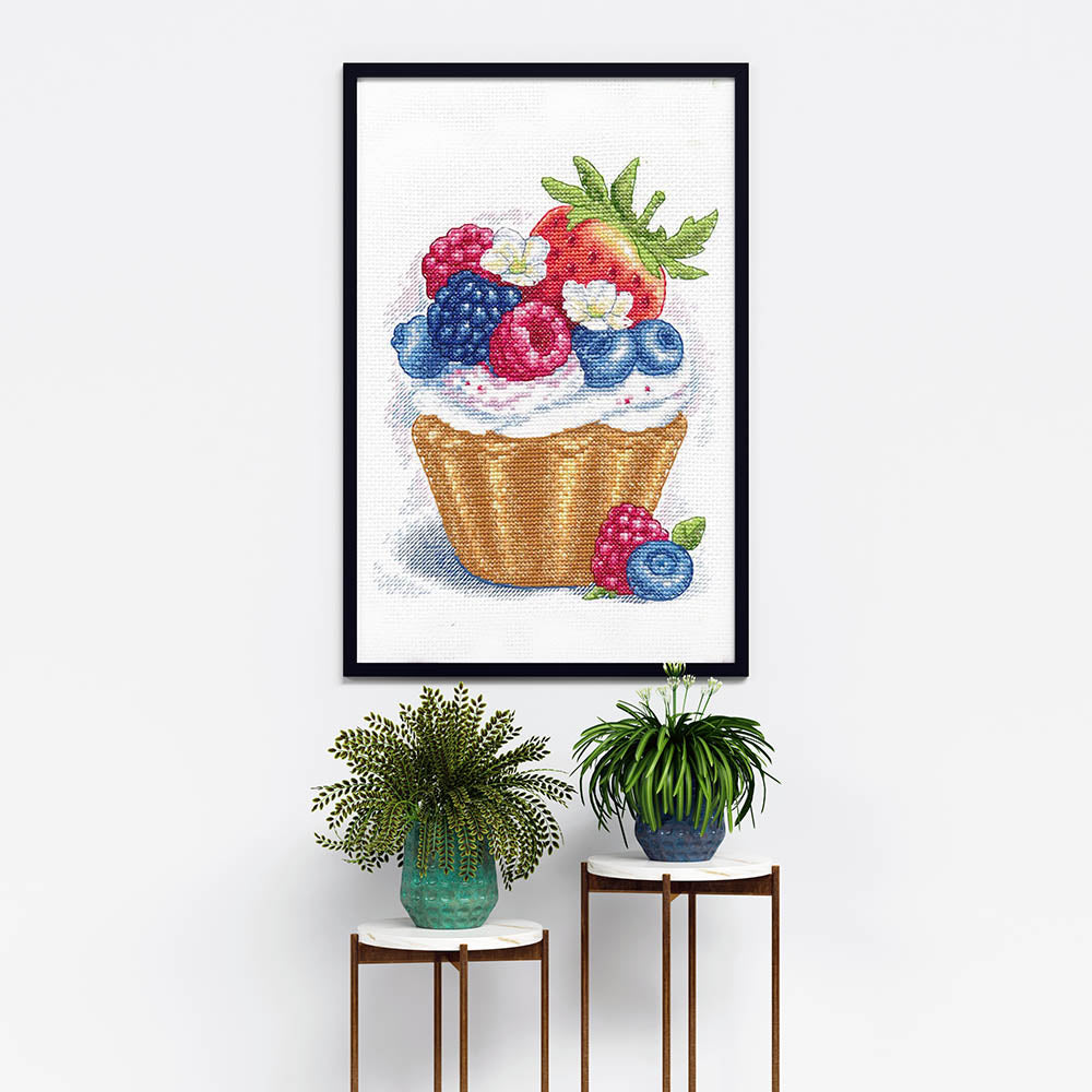 Kreuzstich - Beerendessert | 20x20 cm - Diy - Fadenkunst