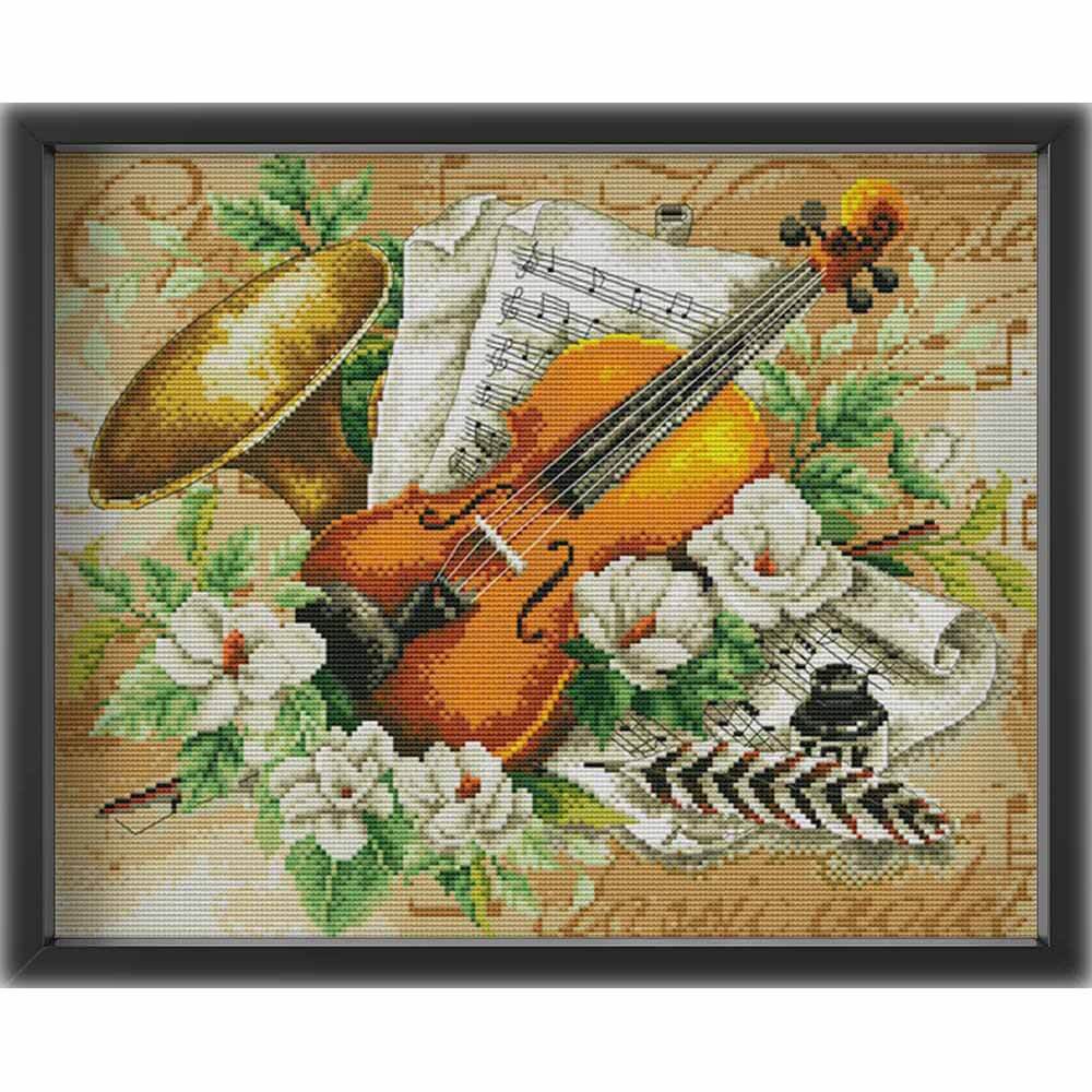 Kreuzstich - Geige und Trompete | 50x35 cm - Diy - Fadenkunst