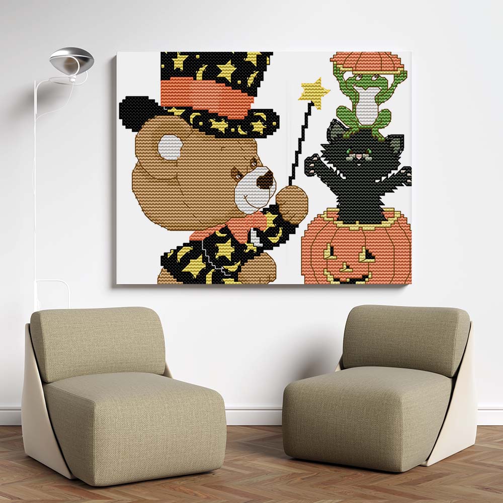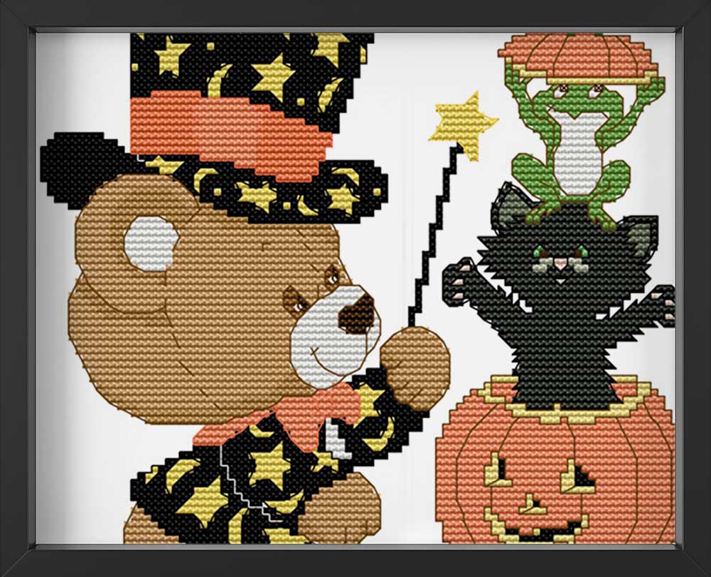 Kreuzstich - Bärchen feiert Halloween | 20x20 cm - Diy - Fadenkunst
