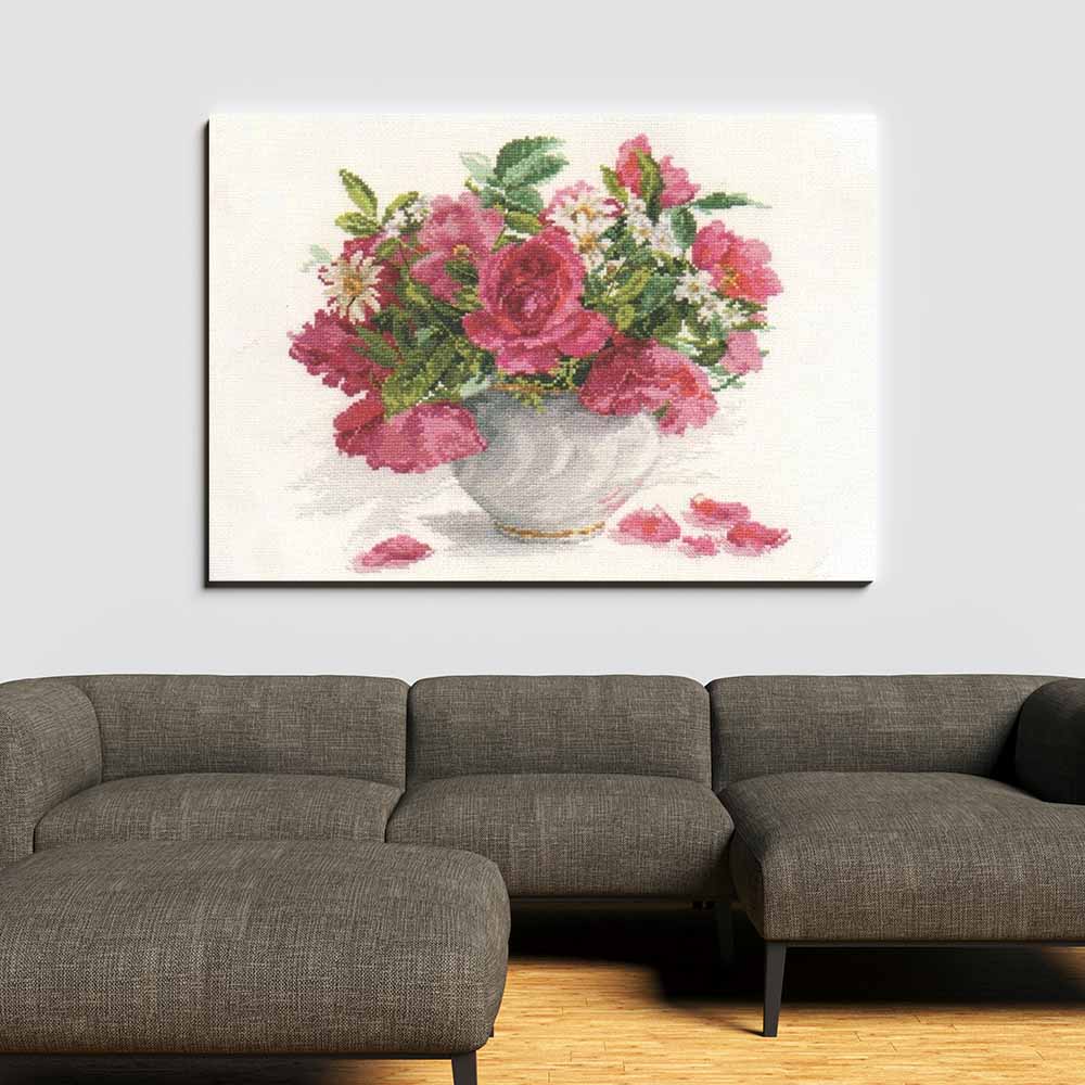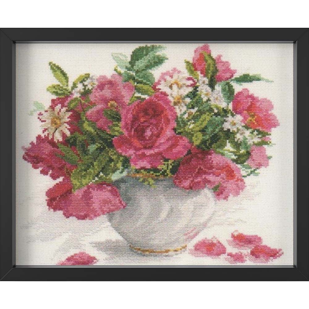 Kreuzstich - Blühender Garten - Rosen und Gänseblümchen | 30x30 cm - Diy - Fadenkunst