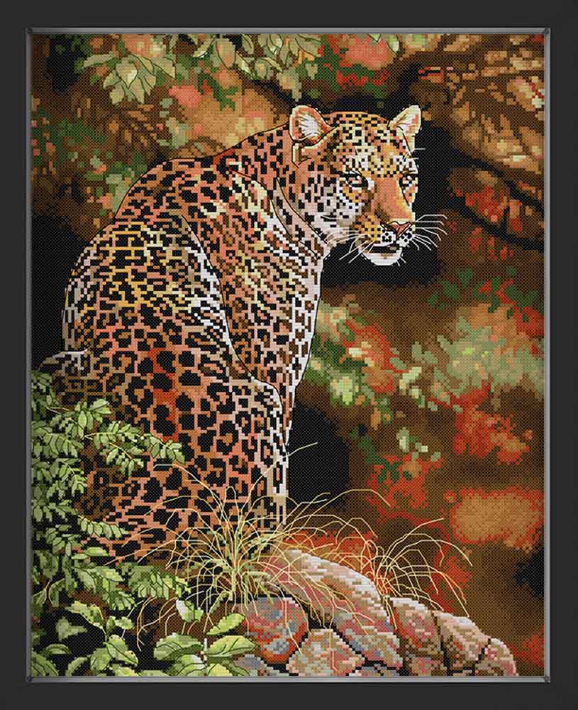 Kreuzstich - Leopard im grünen | 40x50 cm