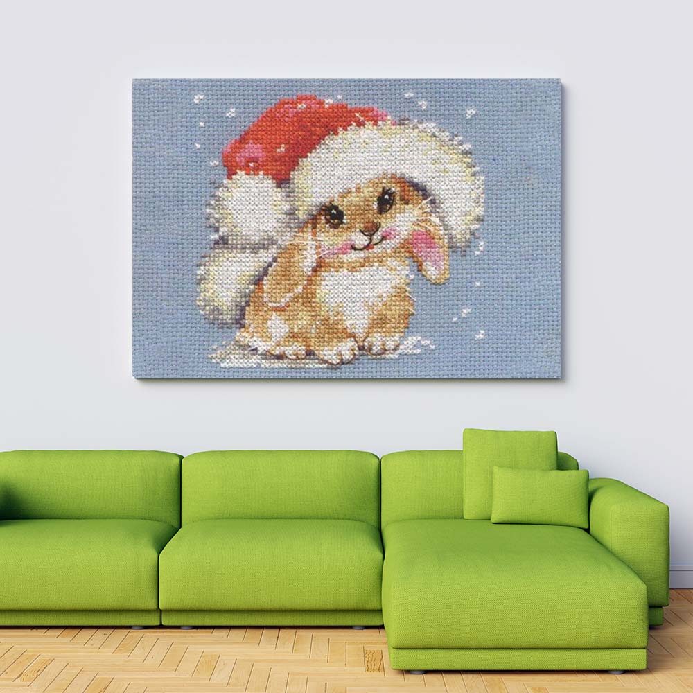 Kreuzstich - Winterhase | 15x15 cm - Diy - Fadenkunst