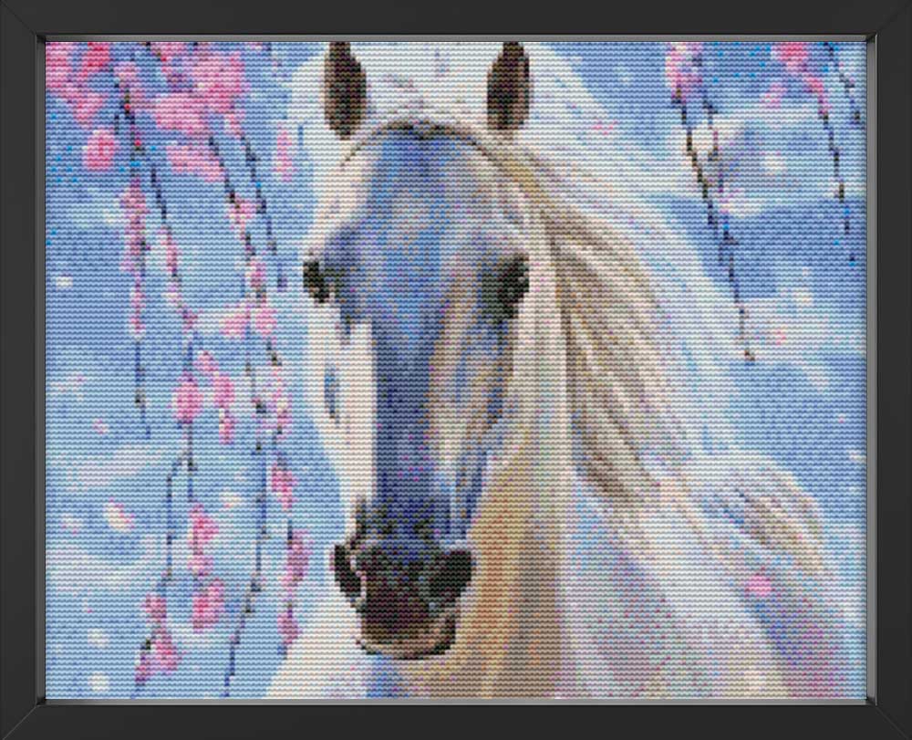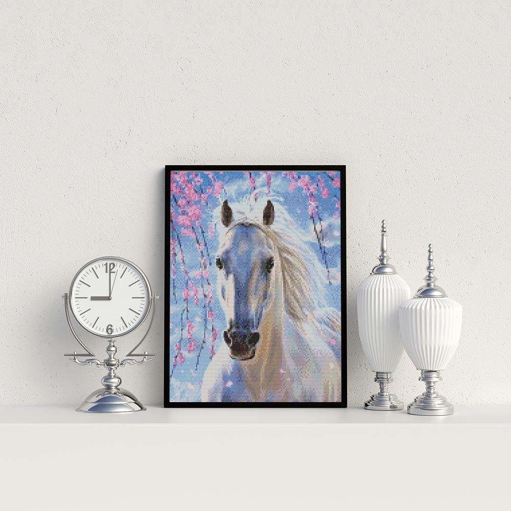 Kreuzstich - Der weiße Schimmel | 35x40 cm - Diy - Fadenkunst