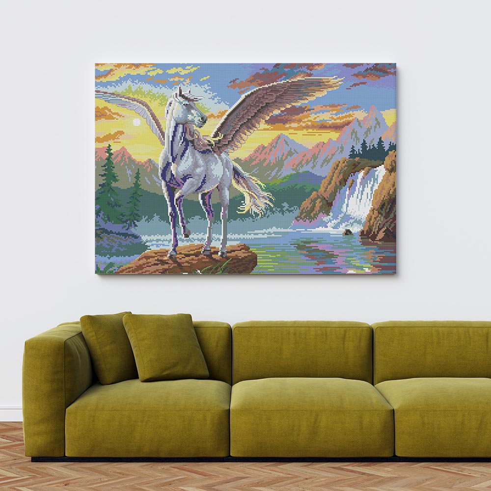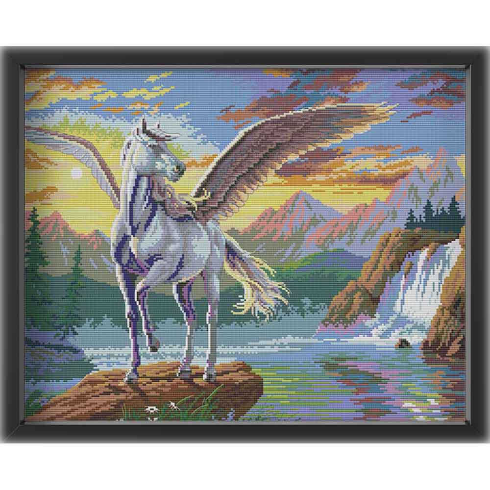 Kreuzstich - Einhorn mit Flügel | 50x40 cm - Diy - Fadenkunst