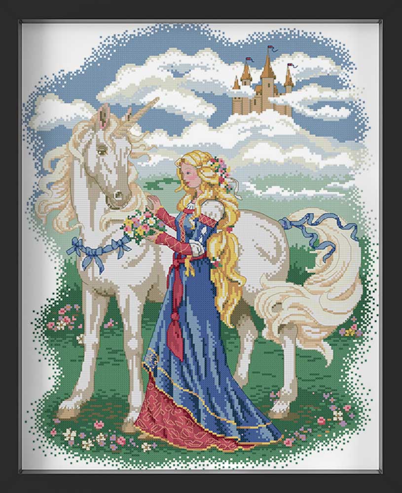 Kreuzstich - Mädchen mit Einhorn | 40x50 cm