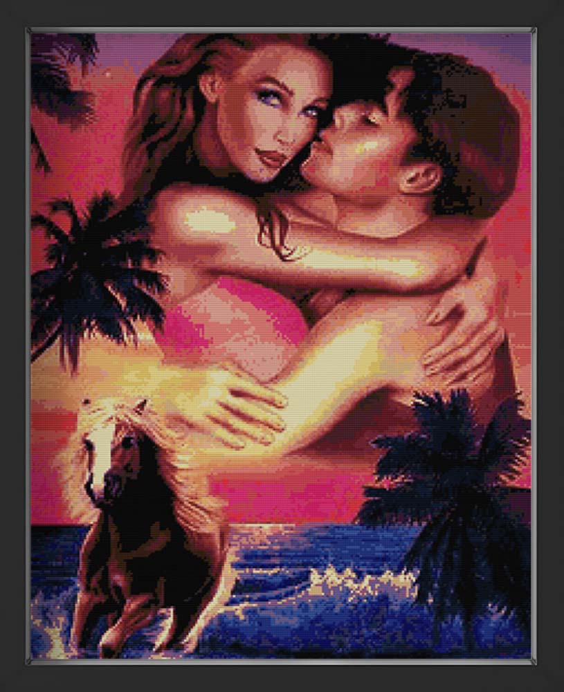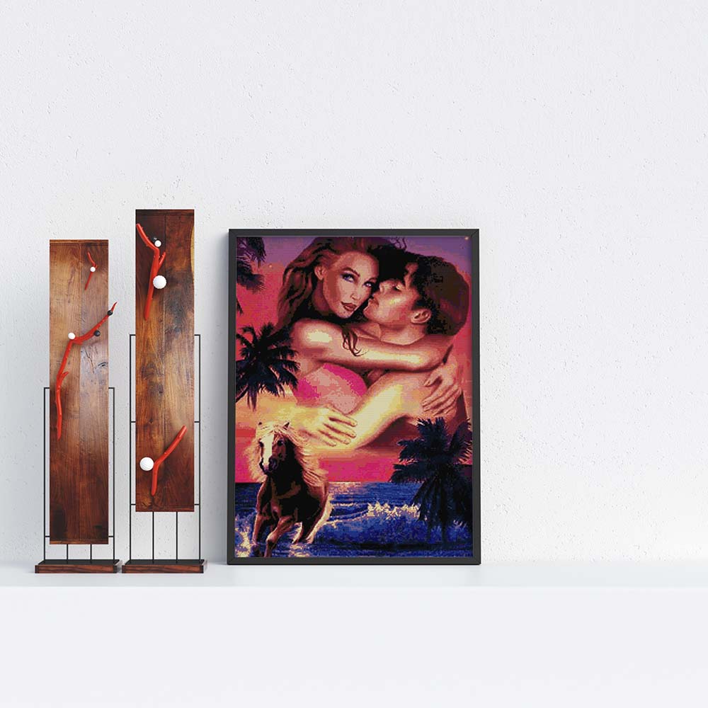 Kreuzstich - Pärchen mit Pferd | 50x60 cm - Diy - Fadenkunst