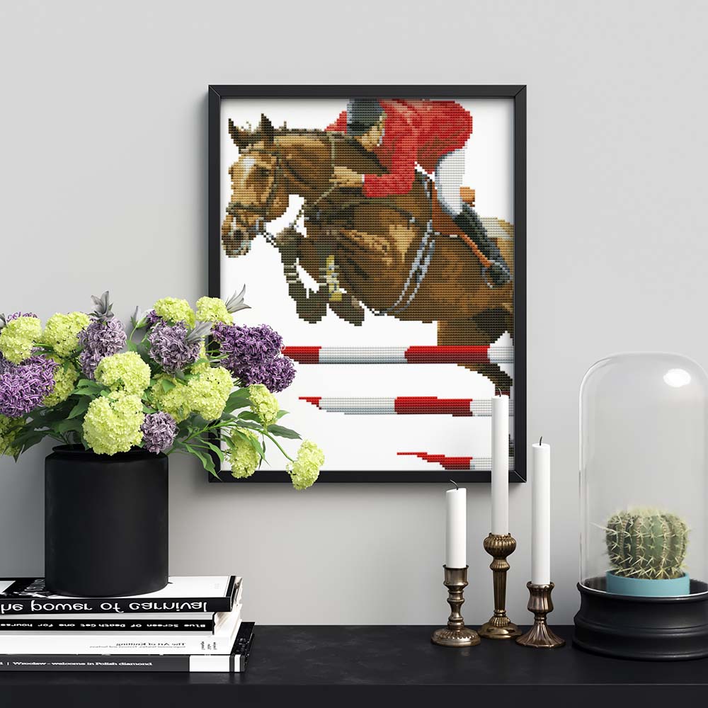Kreuzstich - Pferd über dem Sprung | 40x30 cm - Diy - Fadenkunst