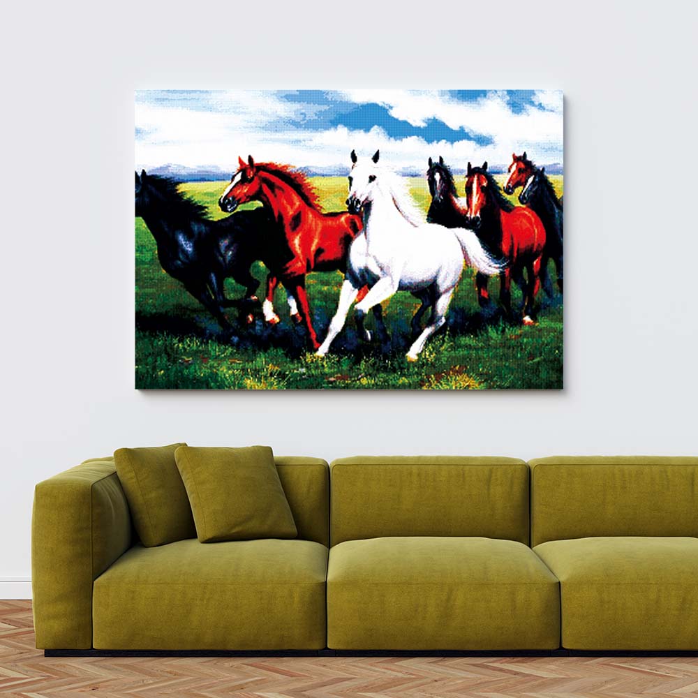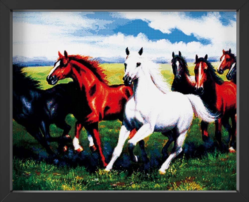 Kreuzstich -  Pferde auf der Weide | 100x50 cm - Diy - Fadenkunst