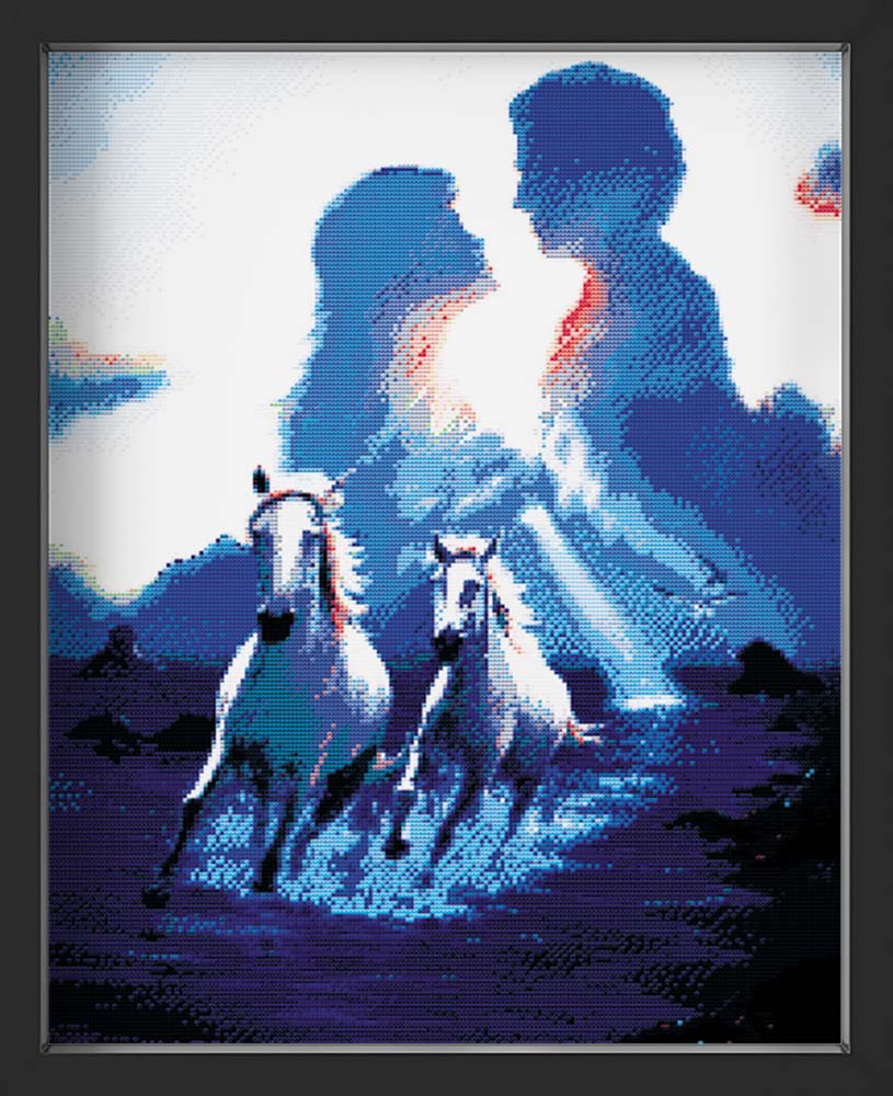 Kreuzstich - zwei Schimmel mit Liebespaar | 40x50 cm