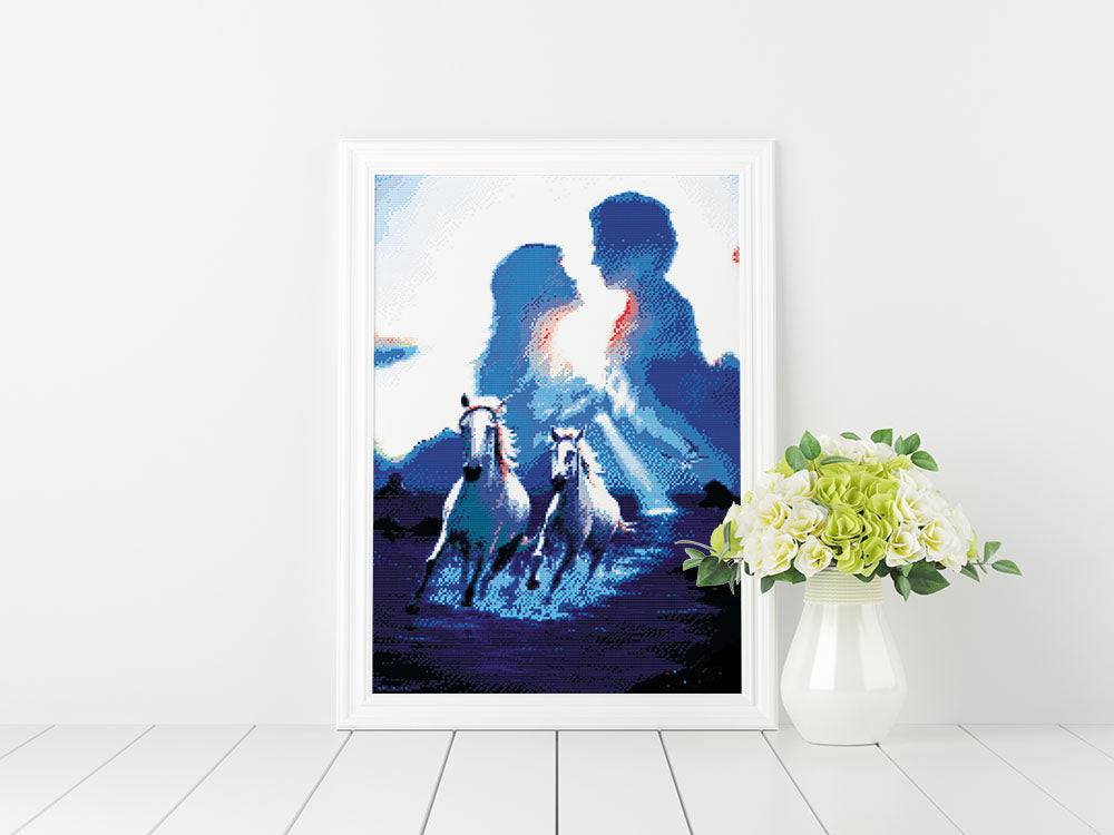 Kreuzstich - zwei Schimmel mit Liebespaar | 40x50 cm - Diy - Fadenkunst