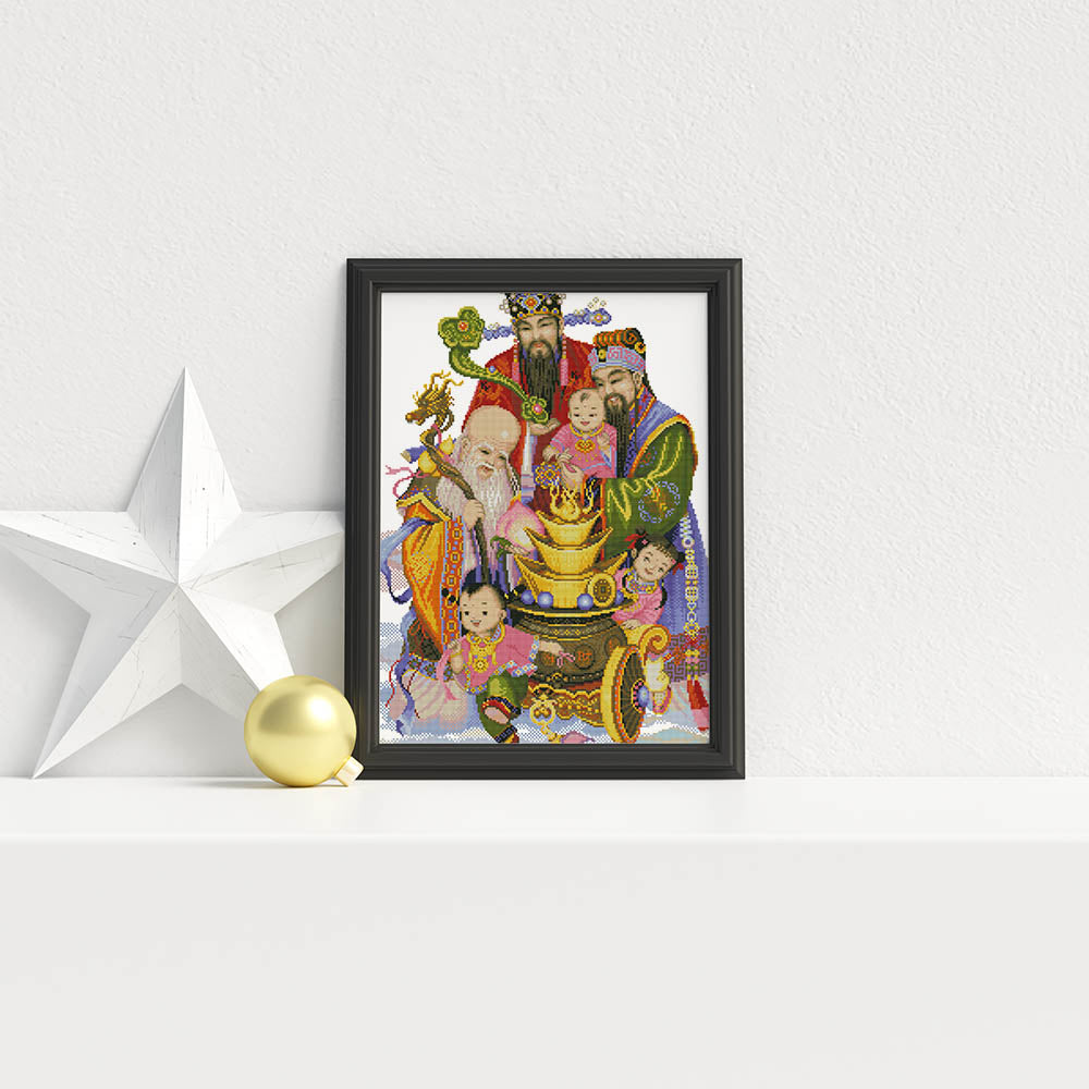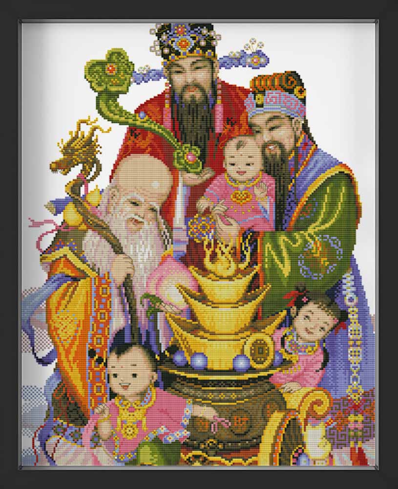 Kreuzstich - Religiöse Chinesische Familie | 40x50 cm - Diy - Fadenkunst