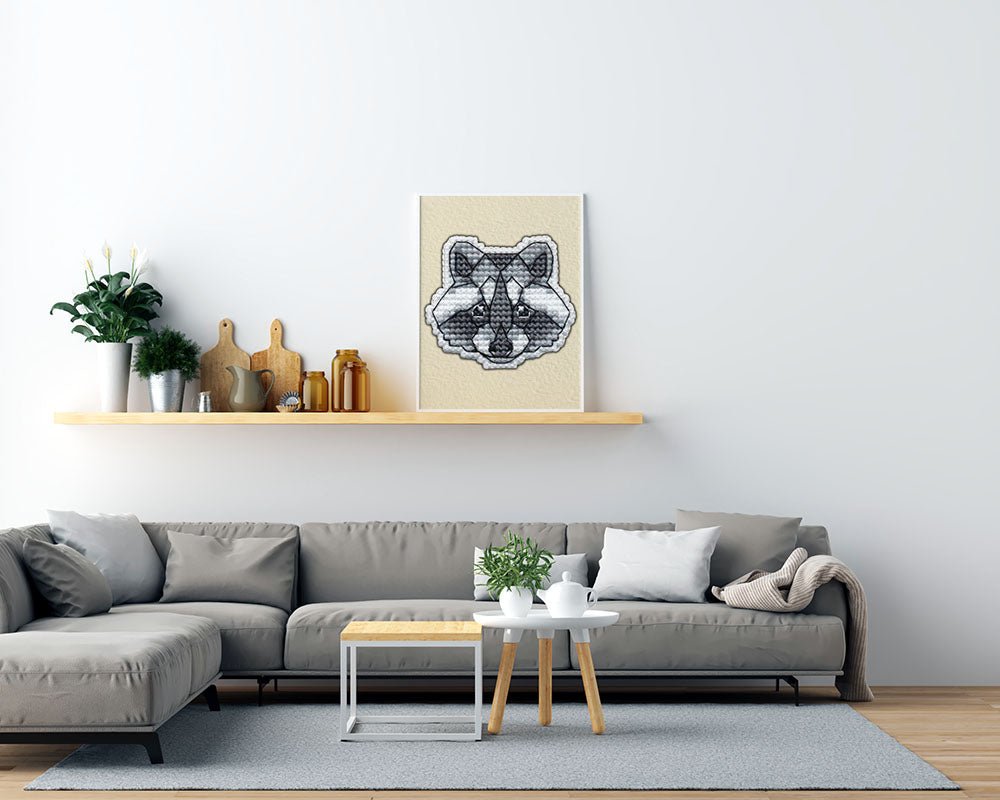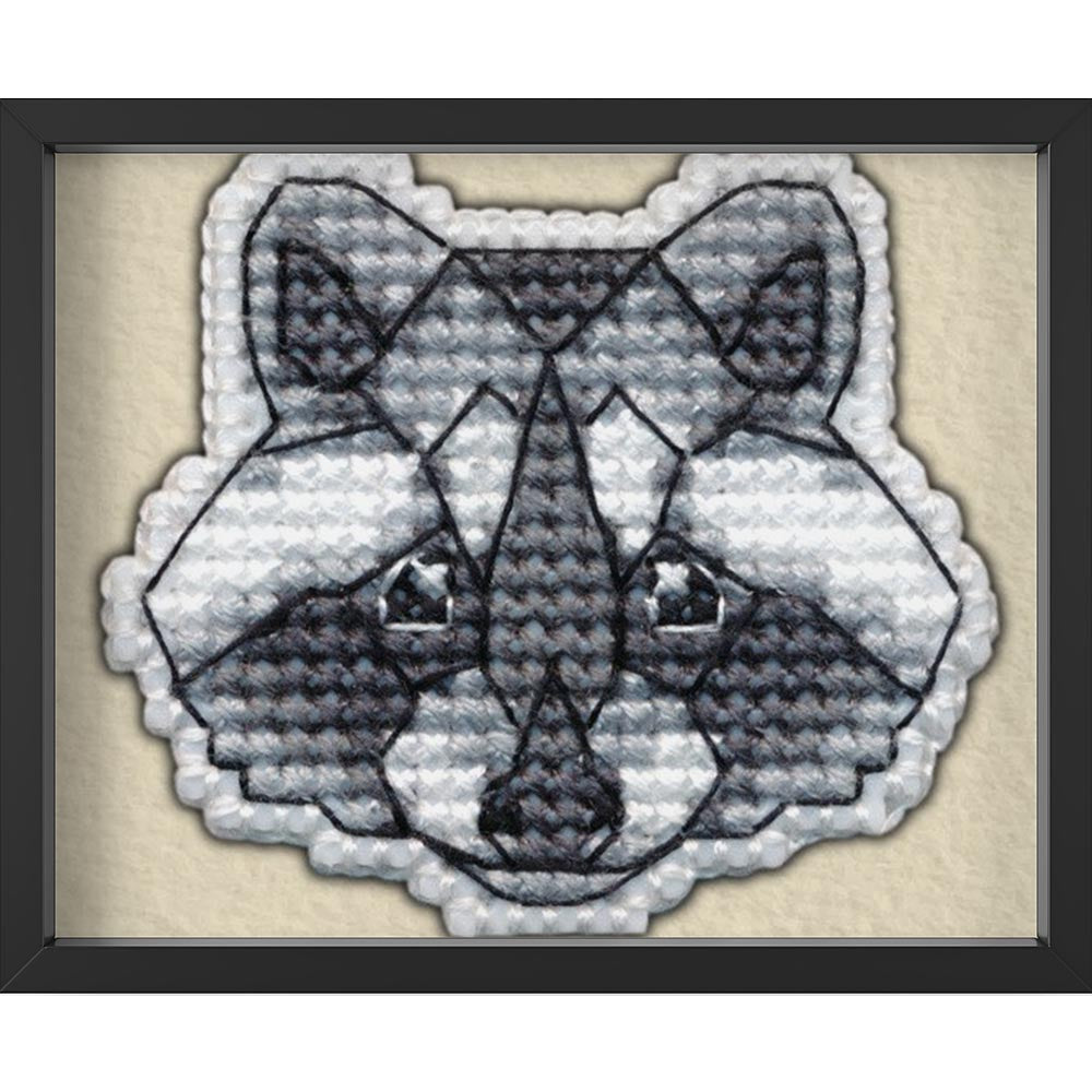 Kreuzstich - Abzeichen Waschbär | 5x5 cm - Diy - Fadenkunst