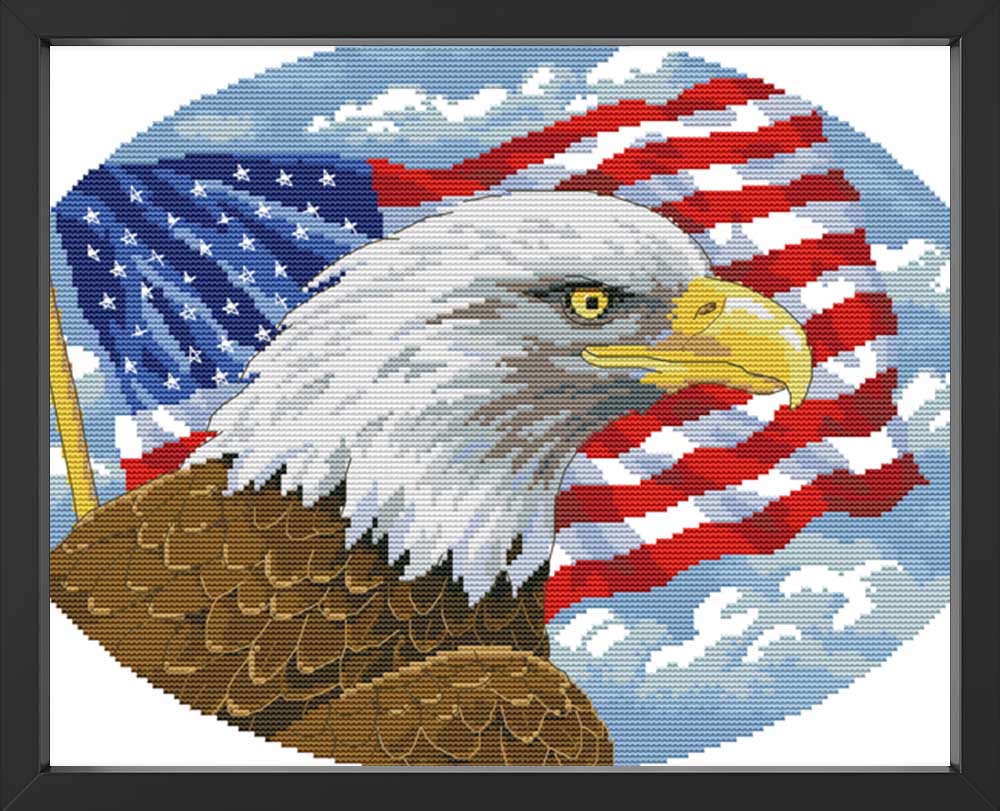Kreuzstich - Adler mit Amerikanischen Flagge | 45x30 cm - Diy - Fadenkunst